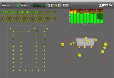 Snímek displeje pluginu postprodukčního zvukového software Pro Tools pro mix v Dolby ATMOS. Kliknutím na obrázek se spustí video s prezentací míchání zvuku v Dolby ATMOS z loňské výstavy ShowEast 2012. Zdroj: Youtube a Insight Media TV1.