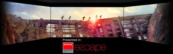 Poprvé jsme se o novém formátu zmínili asi před jeden a půl rokem v rámci souhrnu novinek ze CinemaConu 2014, kde byl tento koncept poprvé představen. Stejně, jako původní třípásová Cinerama, tak i Barco Escape sestavuje obraz synchronně promítaný na tři plátna vedle sebe třemi projektory standardu DCI. Tehdy jsem za sebe vyjádřil obavu o formát, jelikož jsem předpokládal, že stejně, jako u třípásové Cineramy, se i pro Barco Escape budou muset budovat sály se speciální geometrií a filmy se budou muset točit na speciální kamery se třemi objektivy a snímači snímajícími tři filmové okeničky vedle sebe. Avšak situace je ve skutečnosti daleko jednodušší.