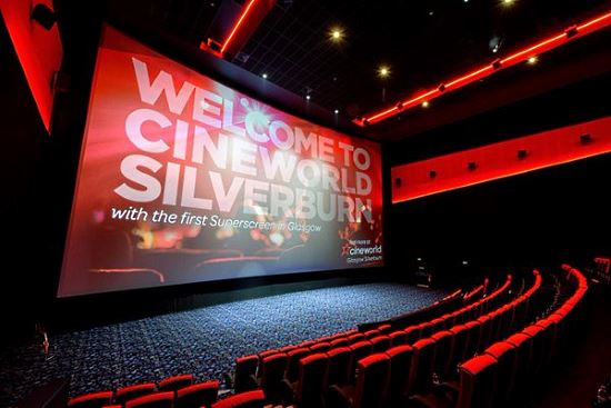 Sál SuperScreen v CineWorld Glasgov. Zdroj webové stránky CineWorld.