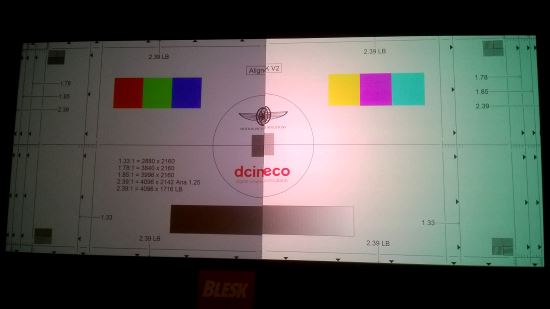 Součástí prezentace byla i projekce dvou 2D trailerů. Ukázka na nový film Boj za svobodu byla odpromítána v porovnání s původní projekcí klasického DCI projektoru Christie CP2000SB. Obraz byl rozdělen a na jednu polovinu plátna byl promítán obraz z Christie a na druhou z laserového Barca. Zřetelný byl na první pohled hlavně kontrastní poměr, který přinesl znatelně větší barevnou hloubku. Opět se mi vybavila stará 70 mm projekce v kině IMAX. Avšak abych neopěvoval pouze laser, vlastní zobrazení pleťovky v tvářích herců se mi zdálo přirozenější z klasického projektoru s xenonovou lampou. To ale vyvrátila třetí ukázka z dokumentu Samsara v nativním 4K zobrazení. Zde se pleťovka zobrazovala už velmi korektně. Ostatně mezi odbornou veřejností se už otevřela diskuze, zdali by se neměly vyrábět pro RGB laserové projektory speciální kopie DCP s upravenou barevnou paletou pro korektnější zobrazení. Vše je ale stále jen ve stádiu úvah a diskuzí.