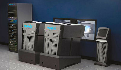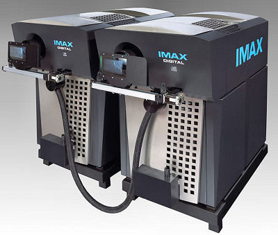 Dva projektory IMAX DIGITAL. Pod vlastním designem se ukrývají "střeva" projektorů Christie CP-2000SB. Zdroj obrázku: IMAX.com