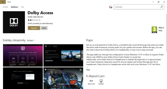 Stačí pouze ve Windows 10 nebo v Xbox One navšívit Store a vyhledat program Dolby Access. Ten po nainstalování spustí 30denní zkušební verzi formátu Dolby ATMOS. V každém PC, noteboku nebo tabletu s "desítkami" bude možné si poslechnout ukázky v režimu sluchátka. A máme-li k dispozici kompatibilní zukovou kartu s osmi a více výstupy, tak si můžeme z PC ozvučit v ATMOSu celé domácí kino.