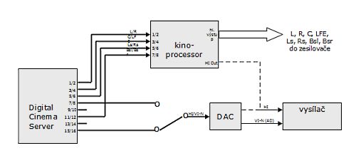 Díky tomu, že digitální kino (DCP) může najednou přehrát až 16 zvukových kanálů, přidání dvou diskrétních kanálů s sebou nenese problém v distribuci filmů v kinech vybavených tomu odpovídajícím zařízením, stejně jako zůstává zachována možnost reprodukce zvukových stop pro zdravtně postižené spoluobčany (zvuková stopa AD – Audio Description, též známa jako VI-N: Visually Impaired Narration).