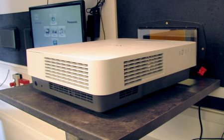 Projektor E-Cinema Sony s modrým laserem a rotujícím filtrem z luminoforu v E-Cinema kině ve Velkých Přílepech. Foto: autor článku