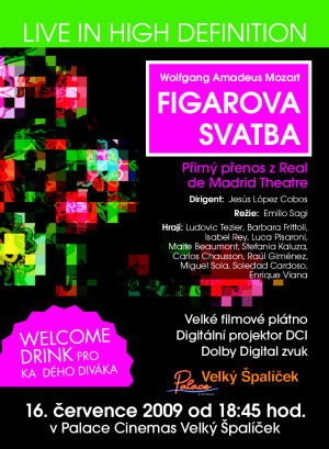 Ve čtvrtek 16. července 2009 od 18:45 je v Palace Cinemas Slovanský dům a Velký Špalíček na programu přímý přenos Figarovy svatby Wolfganga Amadea Mozarta z madridského Real de Madrid Teatro. Orchestr diriguje Jesús López Cobos, v hlavních rolích účinkují Ludovic Tezier (hrabě Almaviva), Barbara Frittoli (hraběnka Almaviva), Isabel Rey (Zuzanka), Luca Pisaroni (Figaro) a Maite Beaumont (Cherubín).