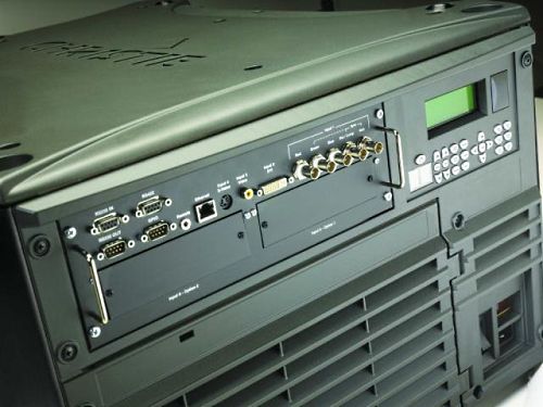 Projektor Christie HD18K, který se ve dvou exemplářích používá pro projekci videomappingu na pražský orloj. Nativní rozlišení 1920×1080 pixelů, svítivost 18000 ANSI lm. Zdroj obrázku: christiedigital.com