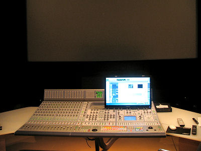 Zvukové studio, kde si návštěvník prakticky vyzkouší, jak má správně znít prostorový zvuk z bezkompresního lineárního 5.1 kanálového záznamu na vzorku 96 KHz/24-bit, jak předepisují standardy DCI. Foto: autor článku