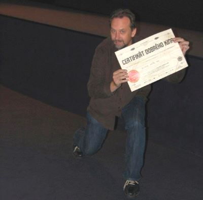 Pavel Tomešek právě převzal certifikát pro krnovské kino Mír (známého pořadatele 70 mm festivalu Krrr)